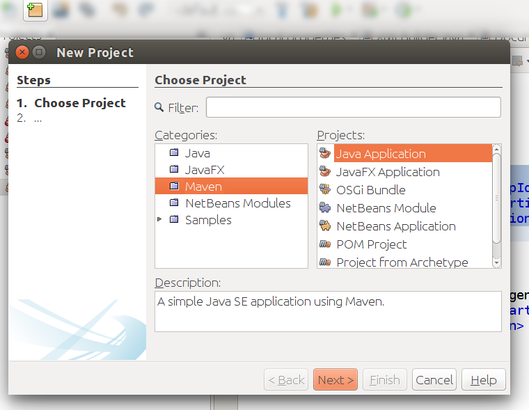 - If you are using Maven, just click on “New Project” icon and then select Maven -> Java Application as reported in the following picture.