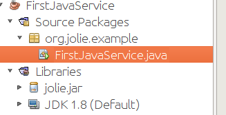 lib(JolieJavaServiceExample/lib) - Copy the jar file of your JavaService into the folder